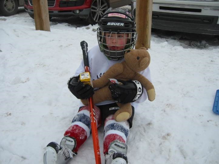 Alex’s first experience of hockey learning to skate on an outdoor rink!