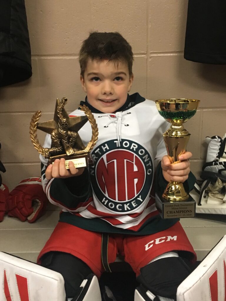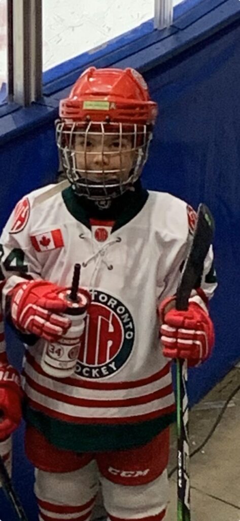 I have been playing hockey since I was 3 years old, starting with the North Toronto team then moving to Calgary in 2021, and now I play for the Glenlake U13 Div 2 team. My favorite player is Austin Mathews.