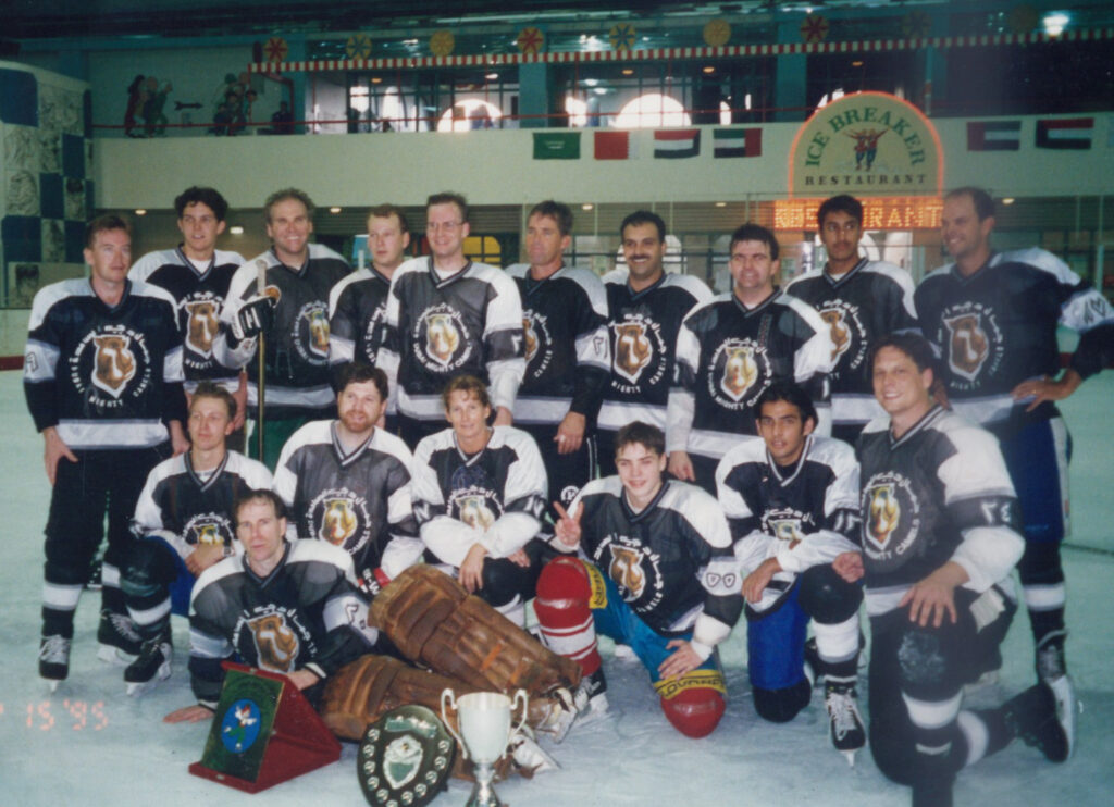 Orlin (front left) with the Dubai Mighty Camels 1995 – Where Orlin first started playing hockey
