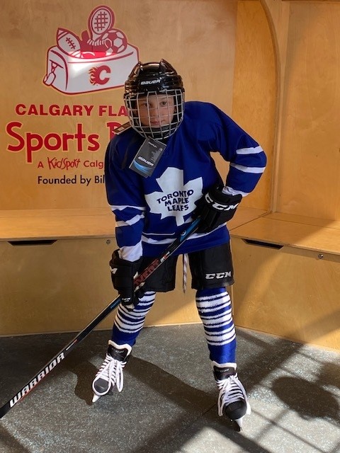 When we arrived to Canada, we were hosted by wonderful family of Darren and Charlene Dorey and their son Jayden. They’ve become not only our friends, but also our family. I saw Jayden play hockey professionally and it inspired me to try it too. I’ve received all the necessary equipment for the game from THE CALGARY FLAMES SPORTS BANK and I am very grateful for this. I am also very grateful to Tucker Hockey for helping me learn how to skate and play hockey.
